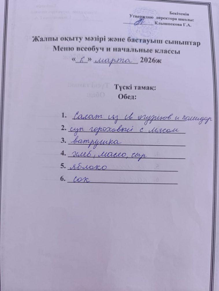 2026 жылғы 06 наурыздағы мәзір