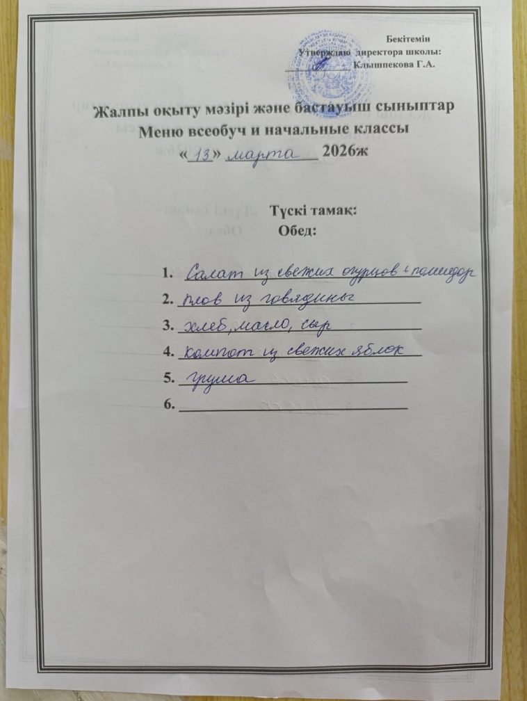 2026 жылғы 13 наурыздағы мәзір