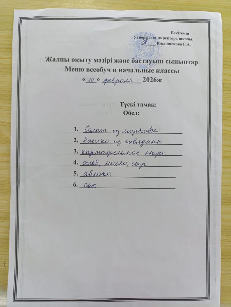 2026 жылғы 10 ақпандағы мәзір