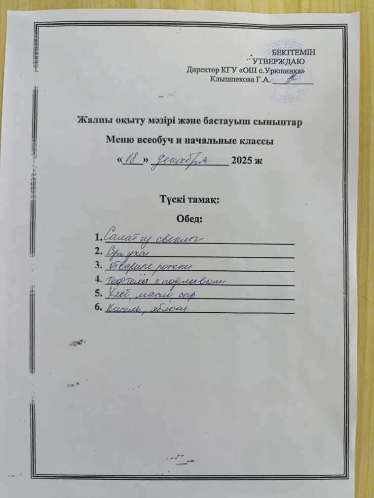 2025 жылғы 18 желтоқсандағы мәзір