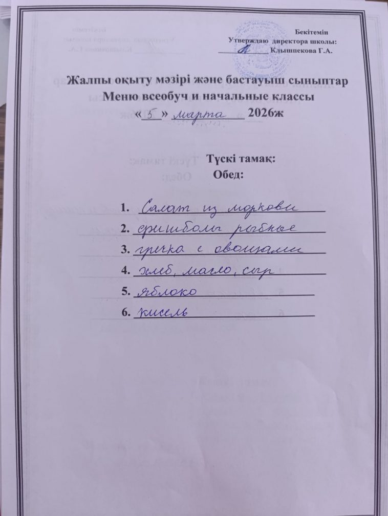 2026 жылғы 05 наурыздағы мәзір