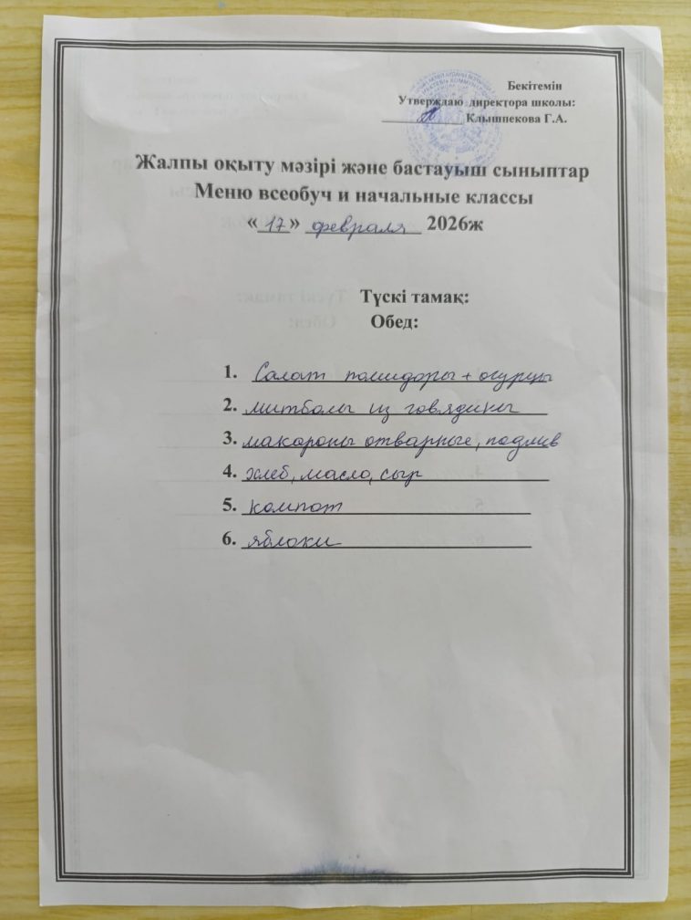 2026 жылғы 17 ақпандағы мәзір