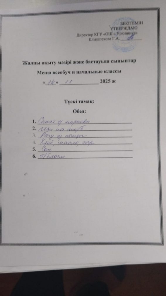 2025 жылғы 14 қарашаның мәзір