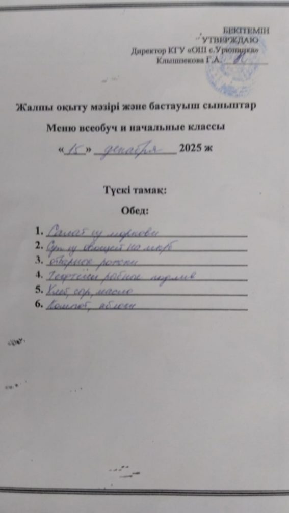 2025 жылғы 15 желтоқсандағы мәзір