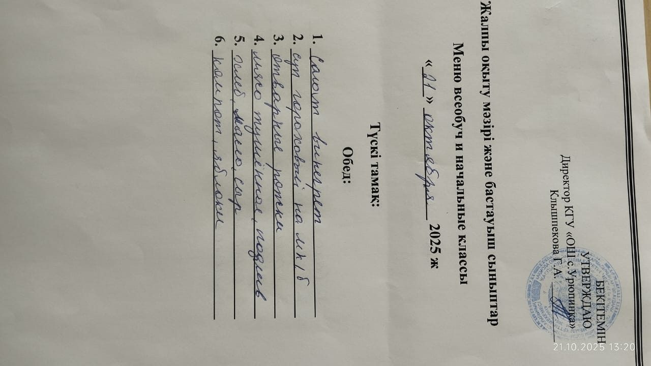 2025 жылғы 21 қазанның мәзір